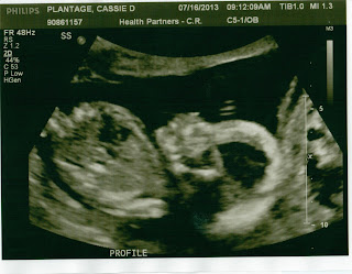 All of his organs and limbs look great. His heart is pumping well, his brain is in the right spot, and he has 10 fingers and 10 toes. He has gentler movements than his sister had at this point. She was on the move constantly. So far, he seems content to relax and carefully adjust his position as not to disturb me.